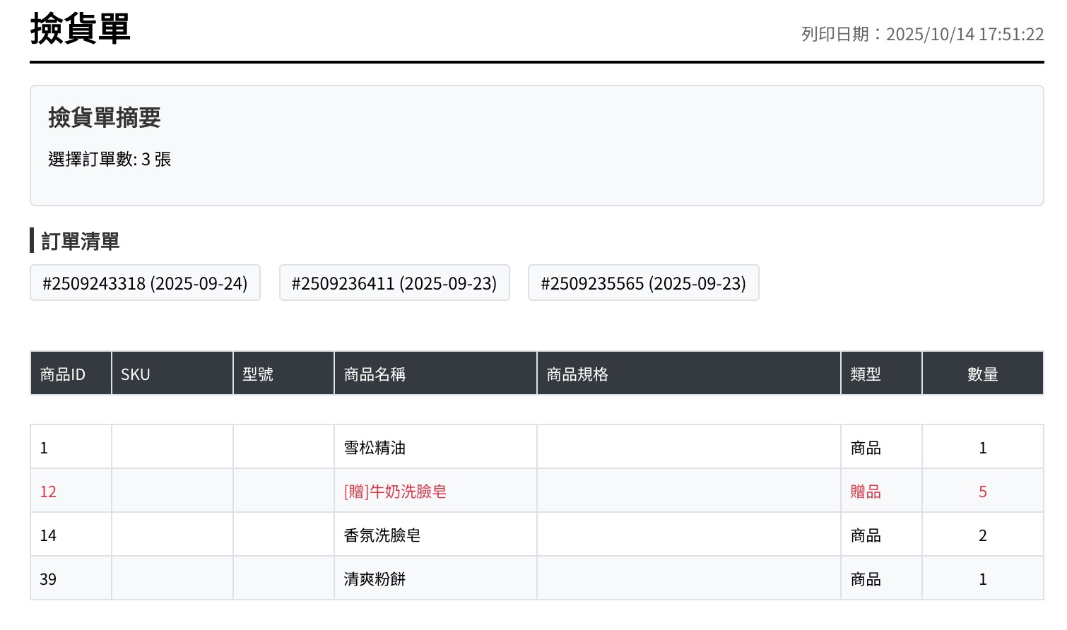 撿貨單將多筆訂單中的商品整合在一張紙上,提升撿貨人員出貨效率,讓出貨過程更流暢。
