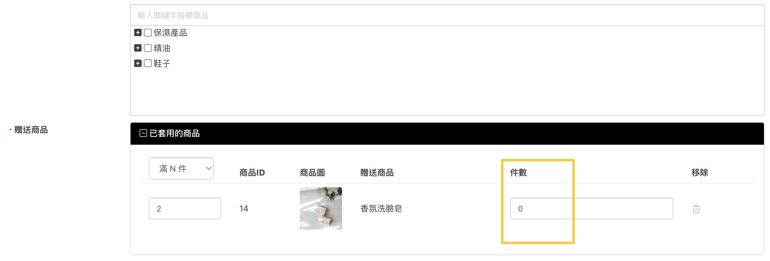 *針對目前已有套用贈品活動者,請重新進入介面確認贈品件數數量