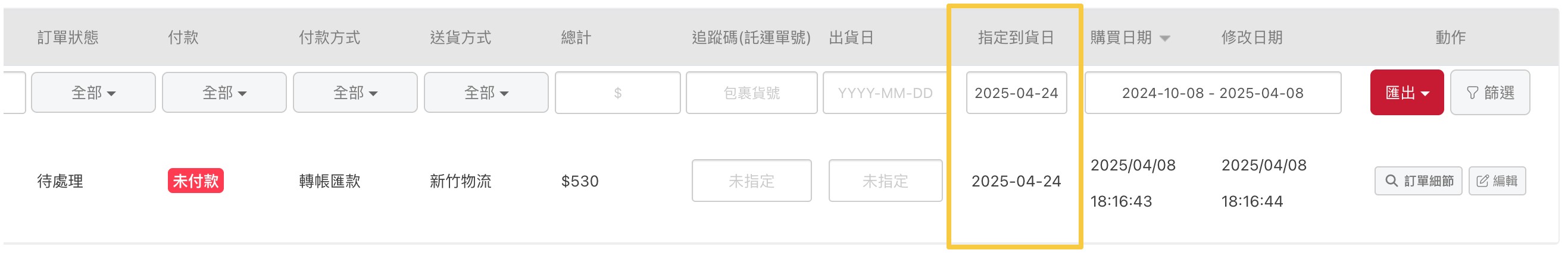 有啟用「指定到貨日」的商家有福囉!現在於訂單列表可以根據指定到貨日快速篩選訂單,方便安排出貨不再怕漏單!