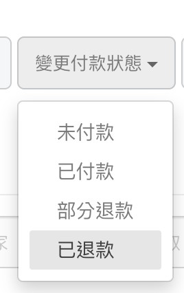 為符合更完整退款情境,付款狀態新增「部分退款」選項
