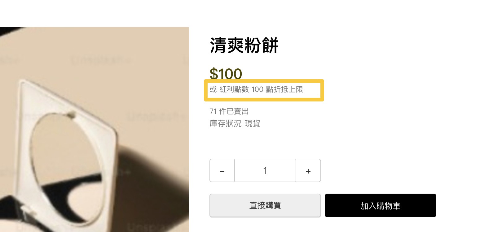 若有設定折抵上限,顧客將於前台商品頁看到上限說明