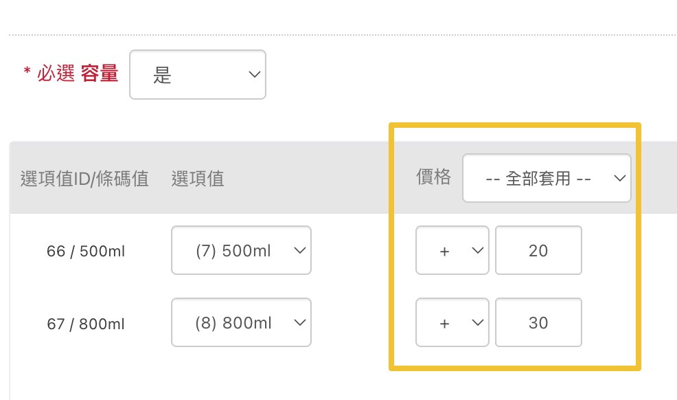 過往在規格具有不同價格時,僅有下拉選單可以自動更新價格,現在其他規格類型也做得到囉!