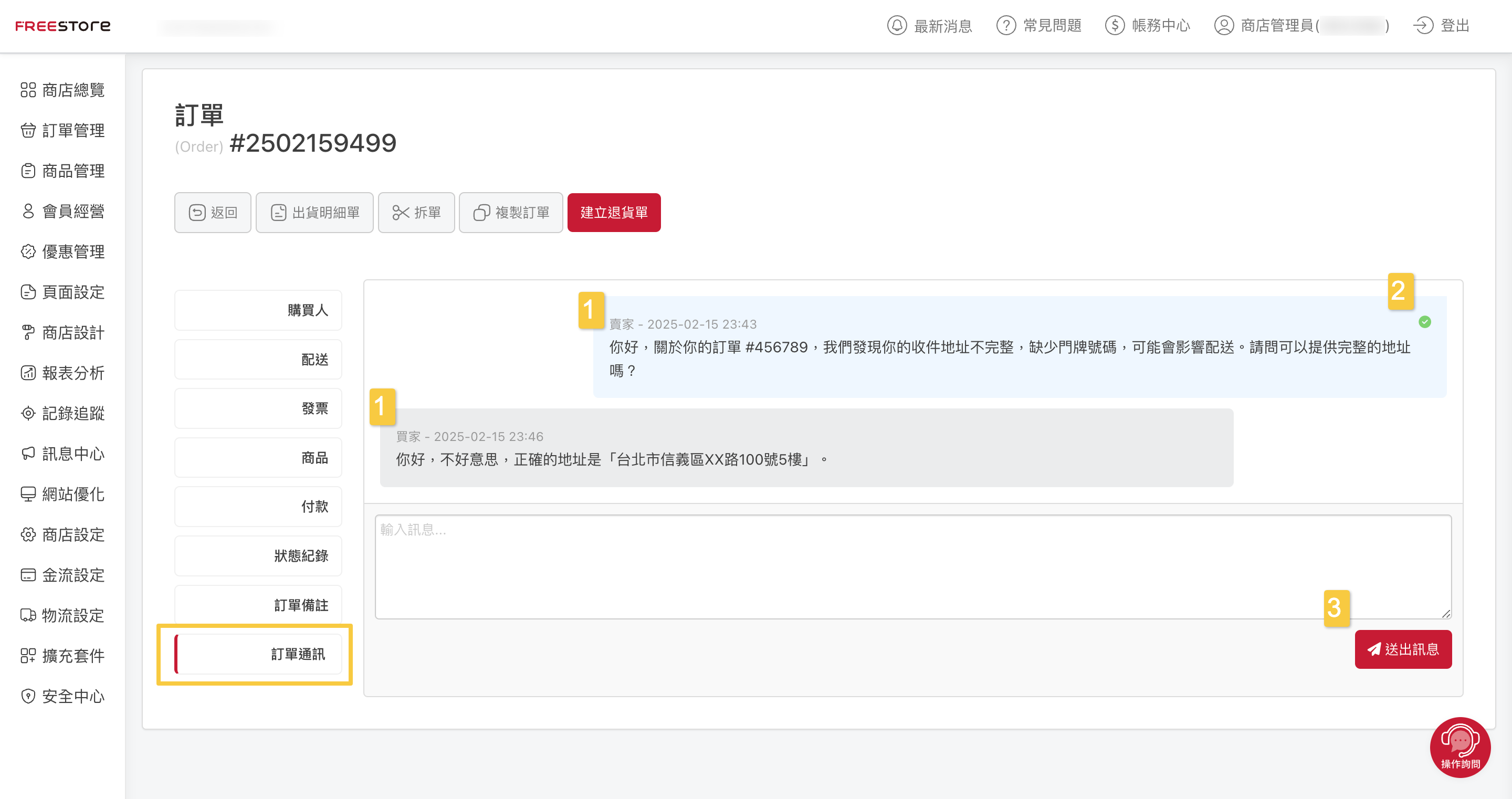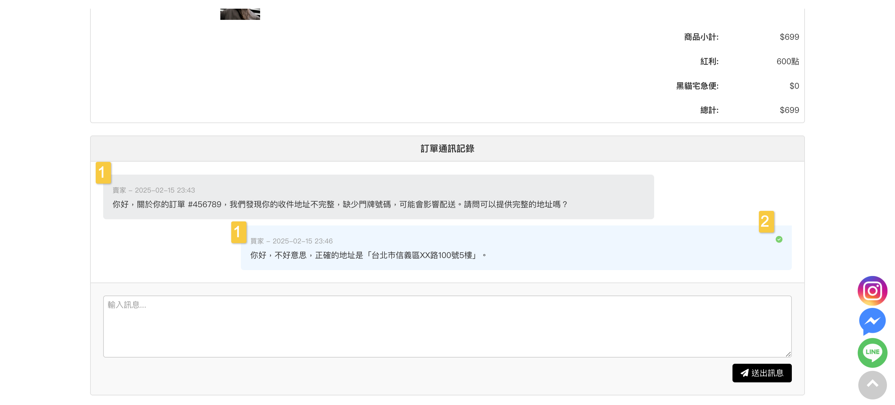 訂單通訊提供商家與顧客間一個有效溝通訂單相關問題的管道