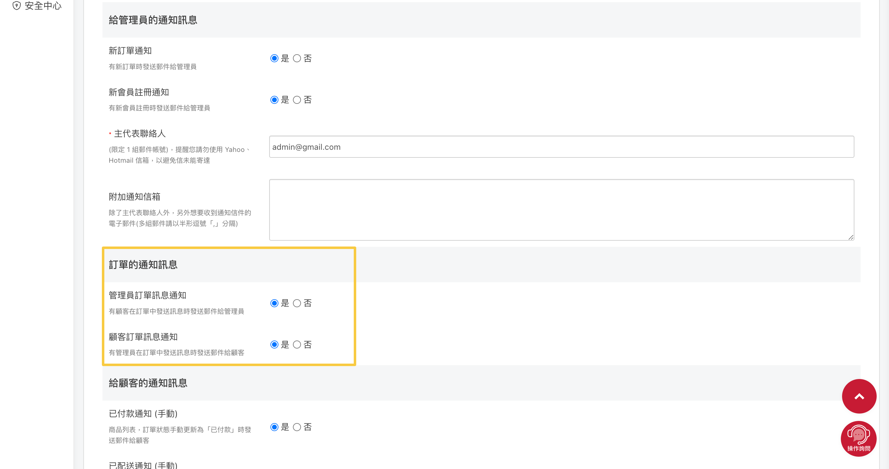 為確保不會漏掉重要的訂單訊息,商家可以設定當有訊息時額外發送 Email 通知