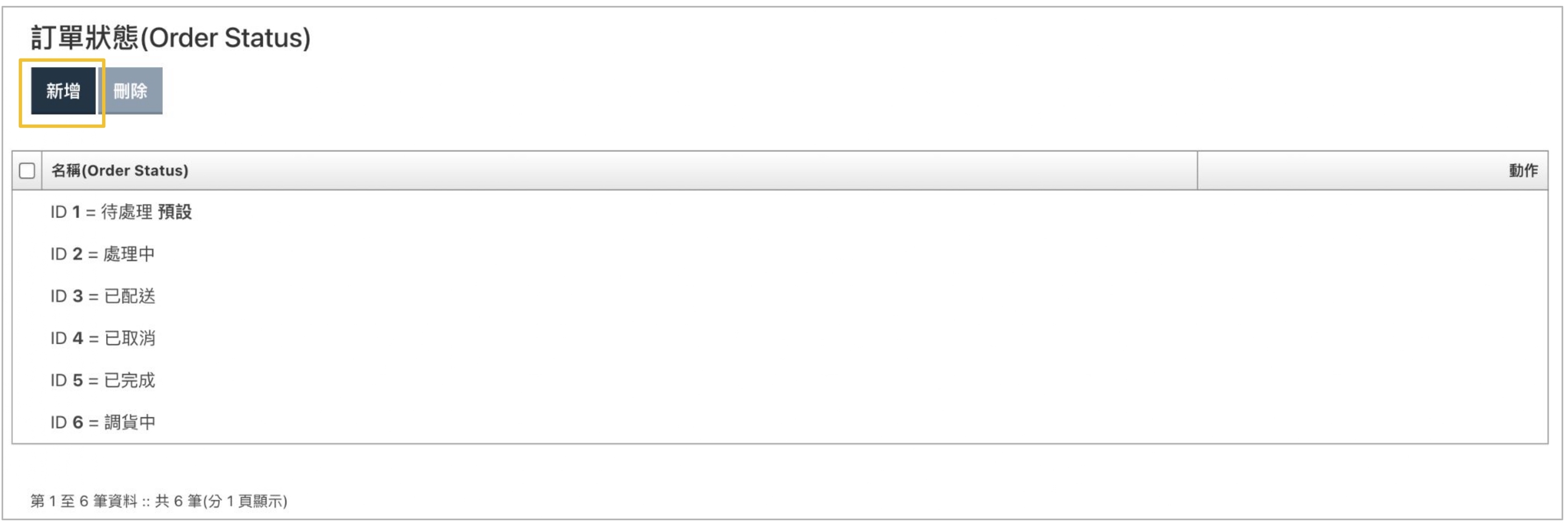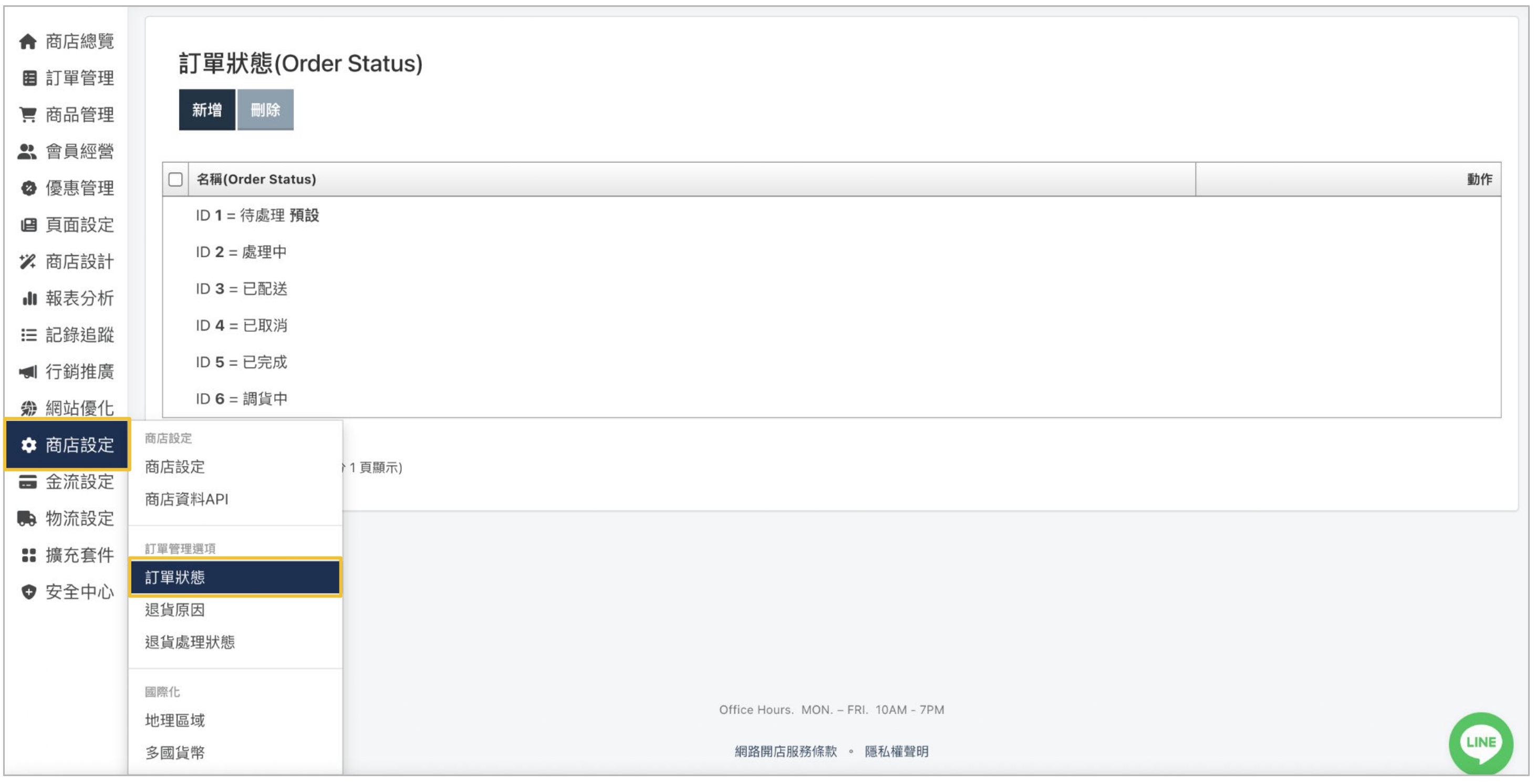 步驟一、管理後台「商店設定 > 訂單狀態」