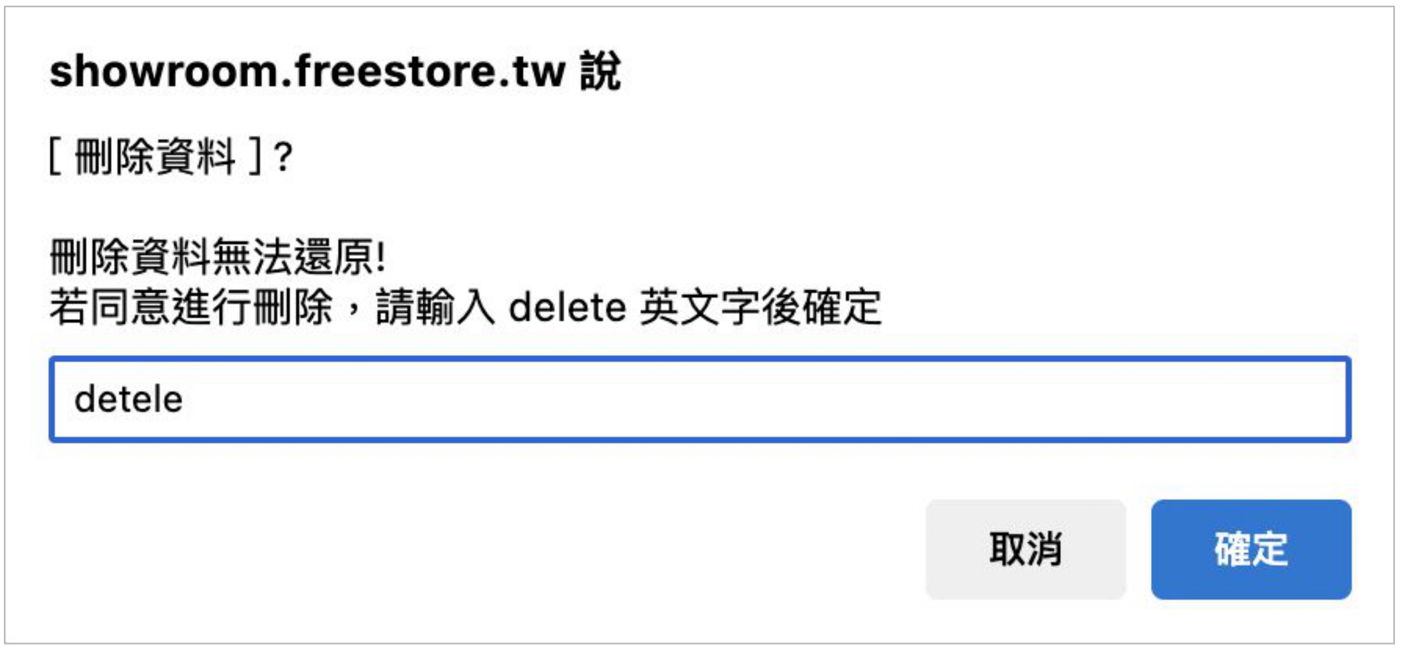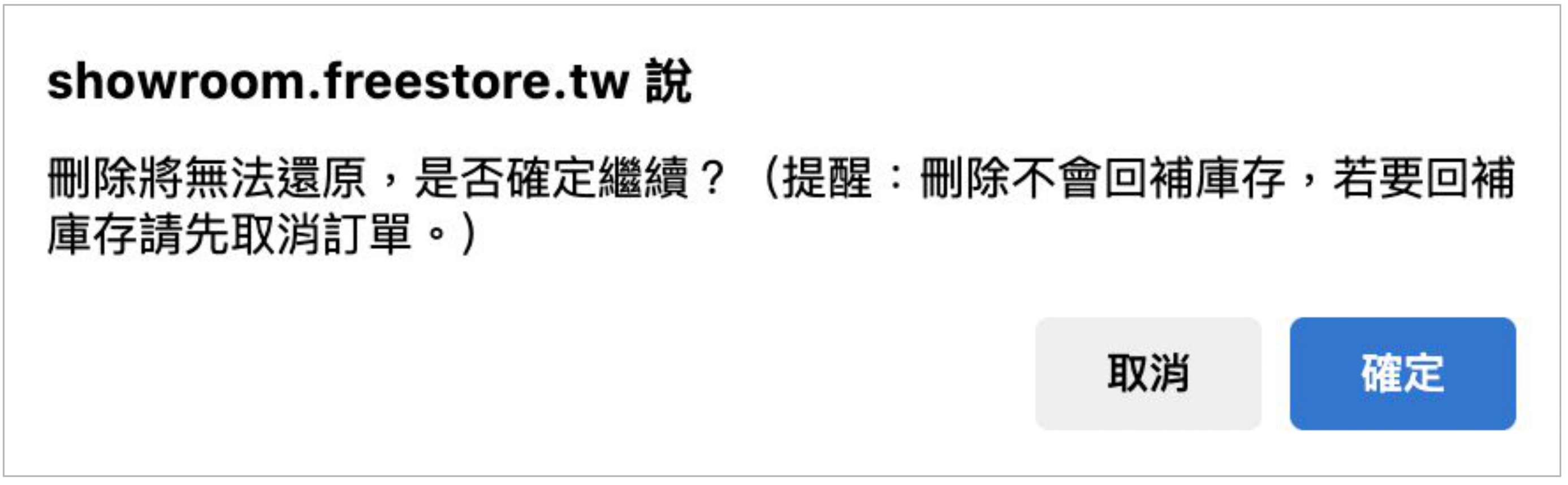 刪除確認,提醒狀態無法還原外也不影響已扣除的庫存