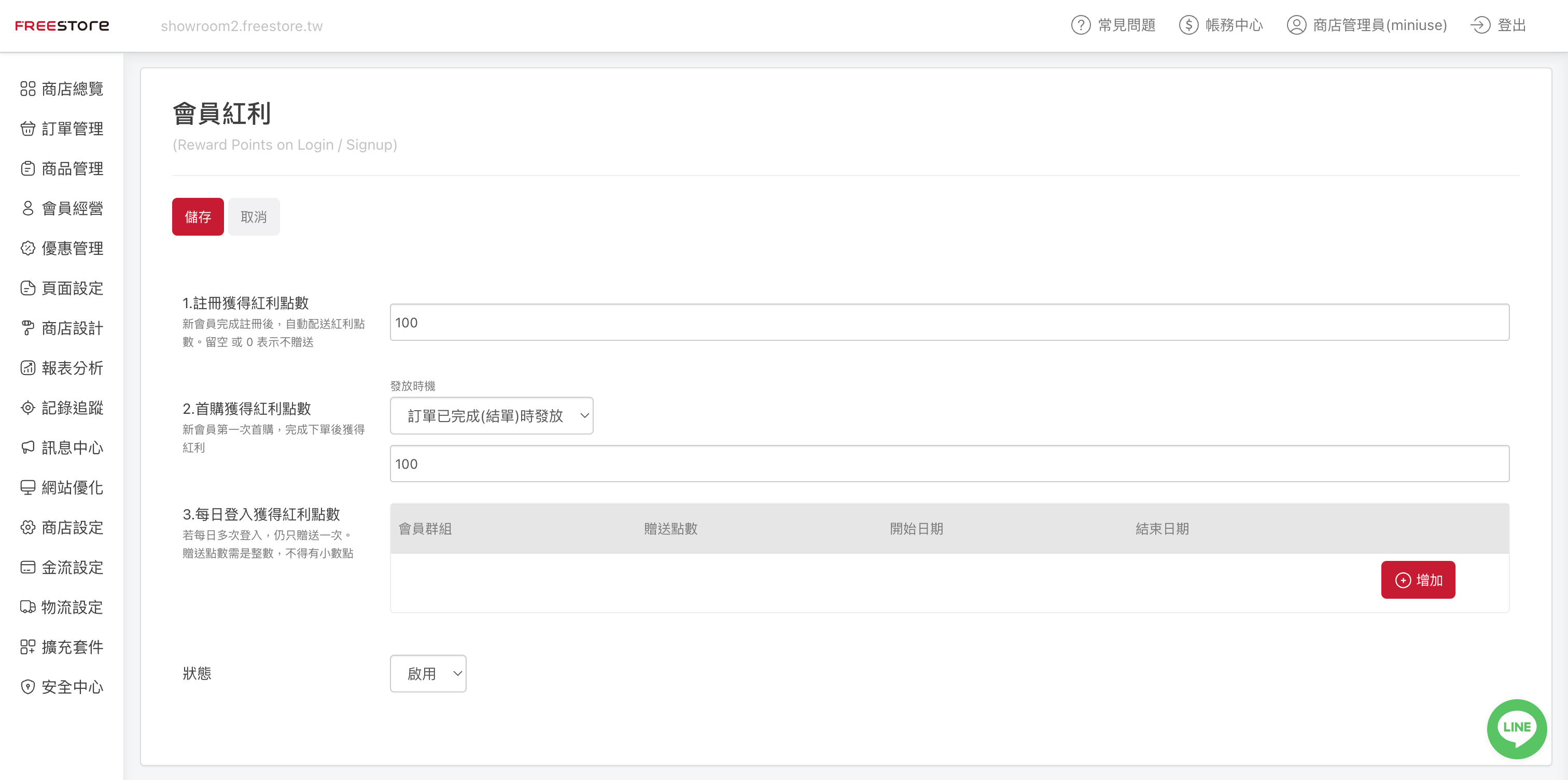 .每日登入獲得紅利點數:可針對不同會員群組給予每日登入的紅利,也可搭配活動時間來刺激吸引會員