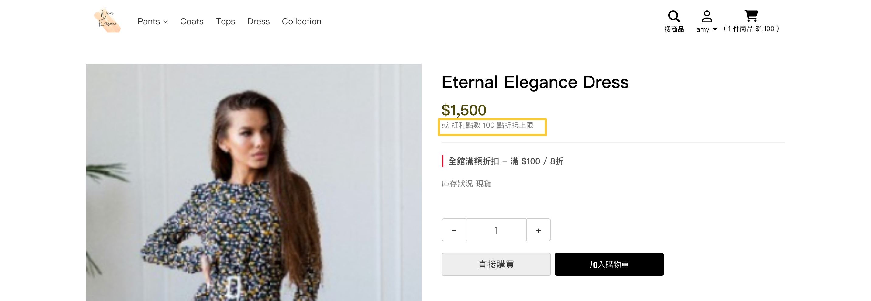 輸入折抵上限後,顧客將於前台商品頁看到上限說明