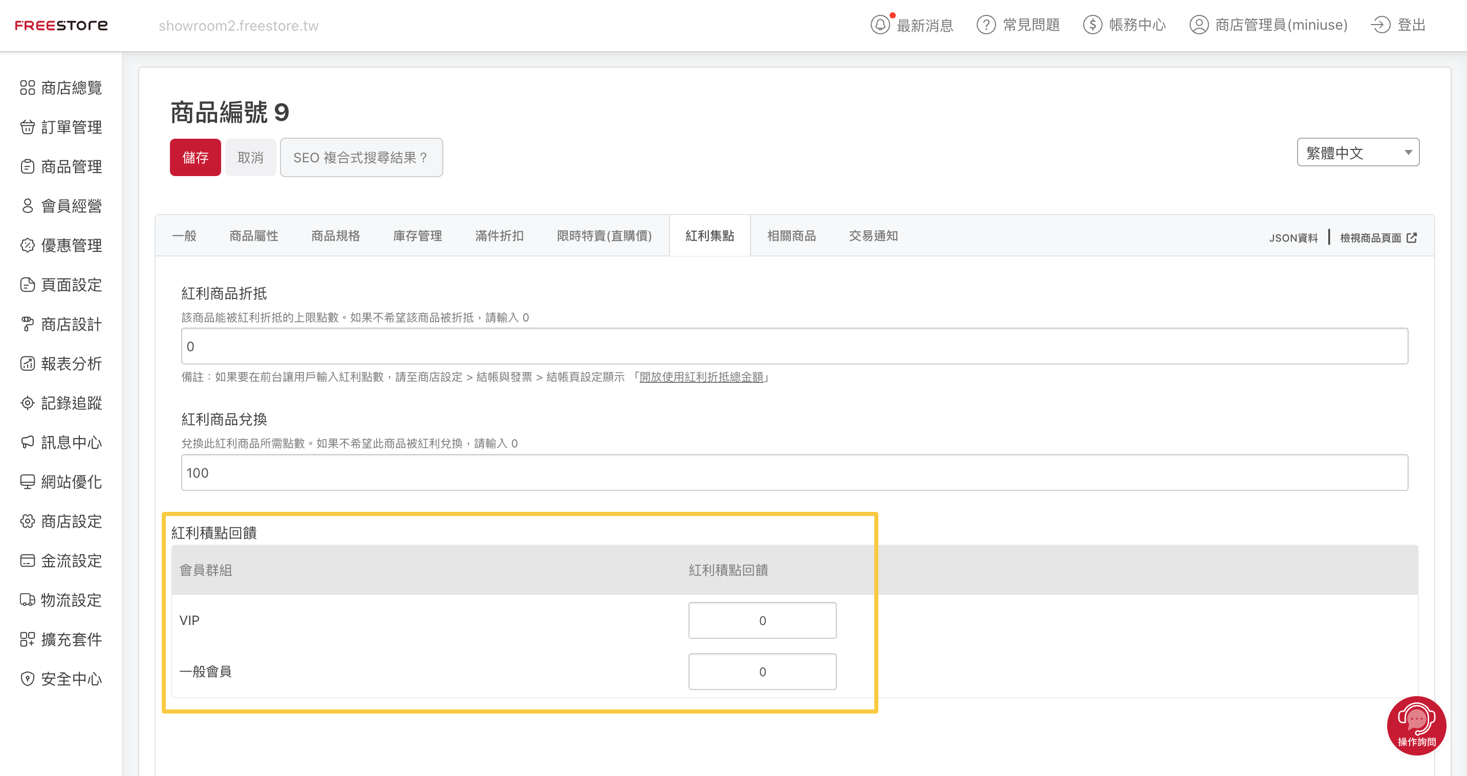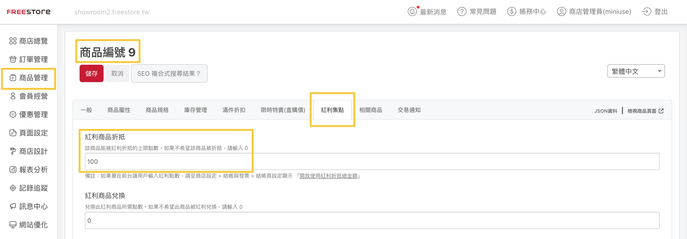 設定好購物紅利兌換規則之後,也可針對特地商品進行更深入的紅利設定。