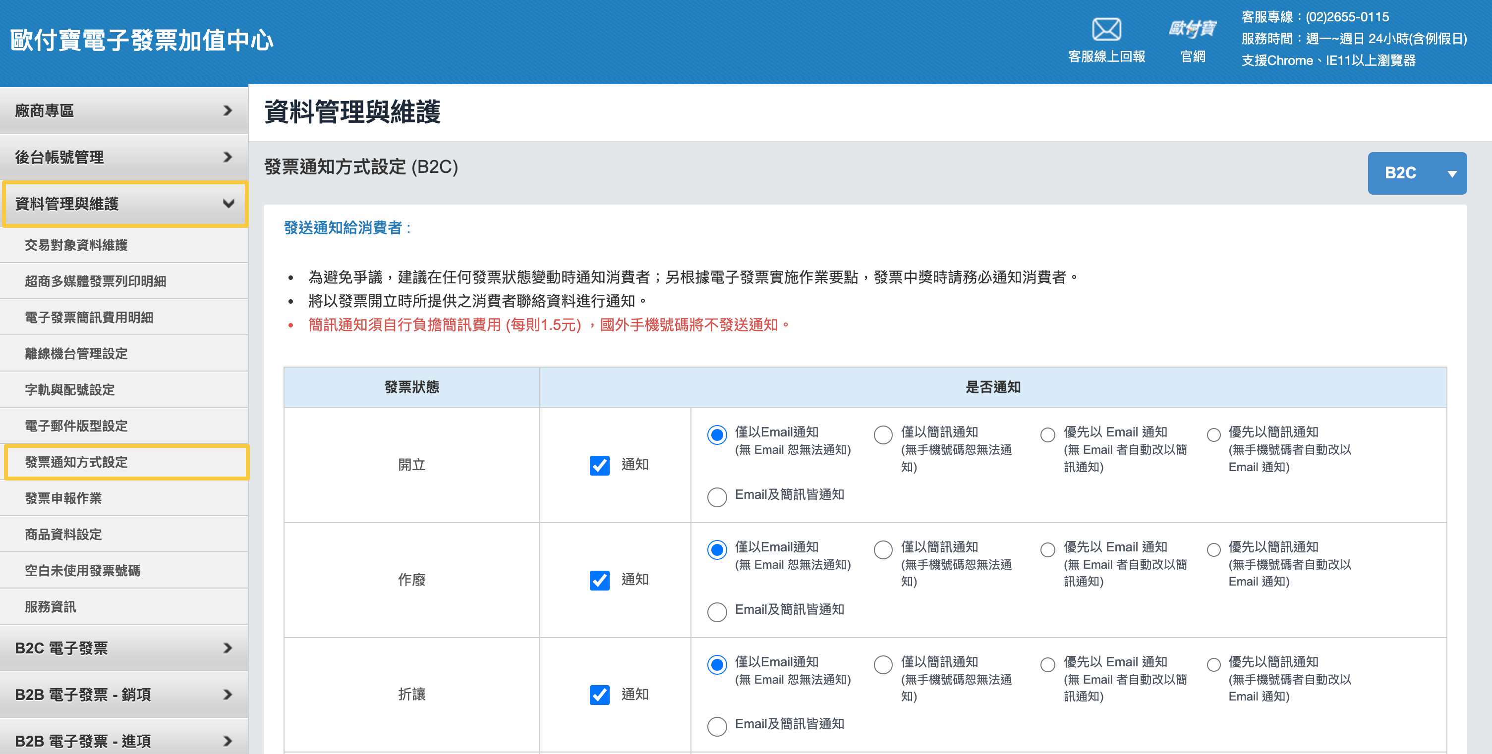 ・發票通知方式:以什麼形式通知顧客發票開立