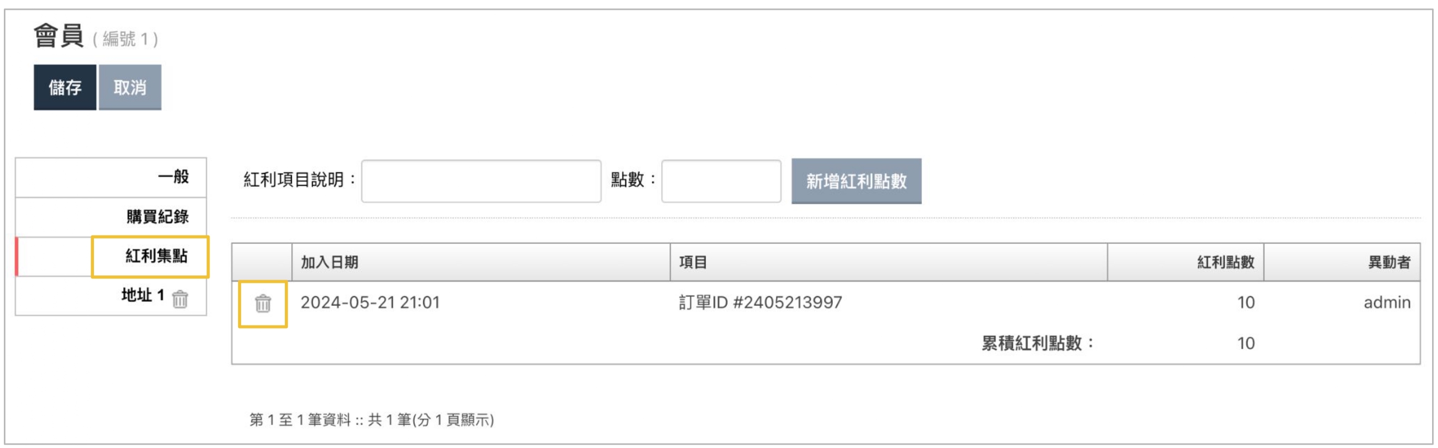 步驟二、「紅利集點 > 垃圾桶」刪除紅利發放