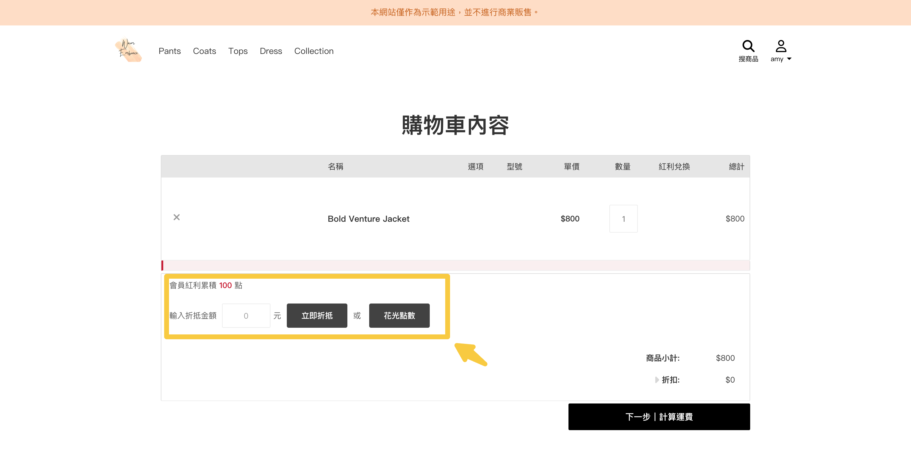 *若該會員沒有紅利時,購物車就不會出現紅利折抵輸入框