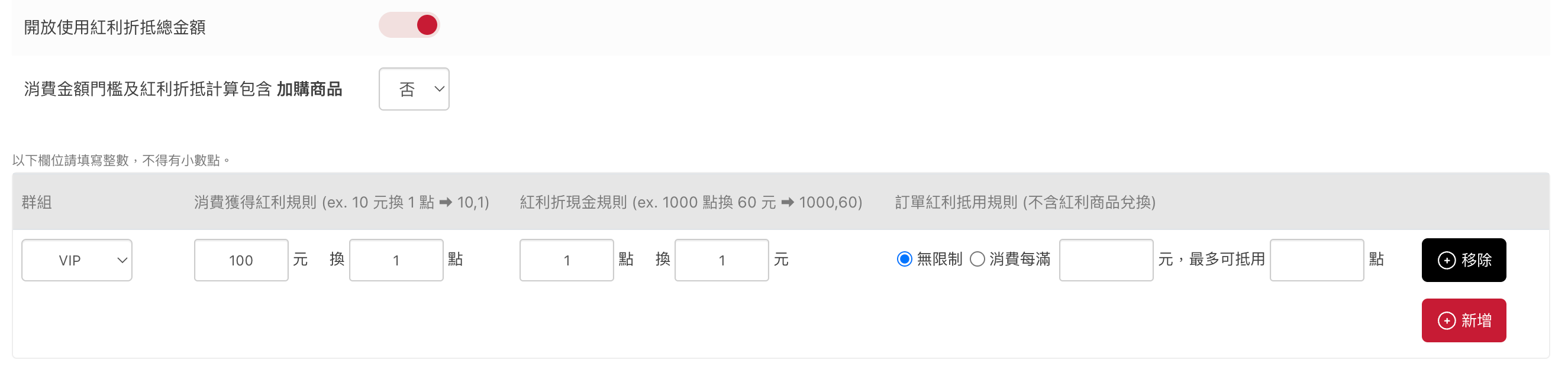 *商品建立時將預設不可折抵,請於此輸入上限來開放折抵