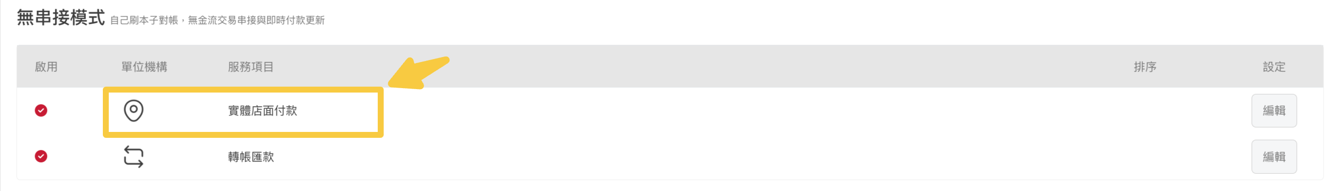 實體店面付款屬於無串接模式,也就是不需要經過審核即可馬上使用,但由於系統並不曉得實際付款狀態,因此訂單的付款狀態需要由店員手動切換。