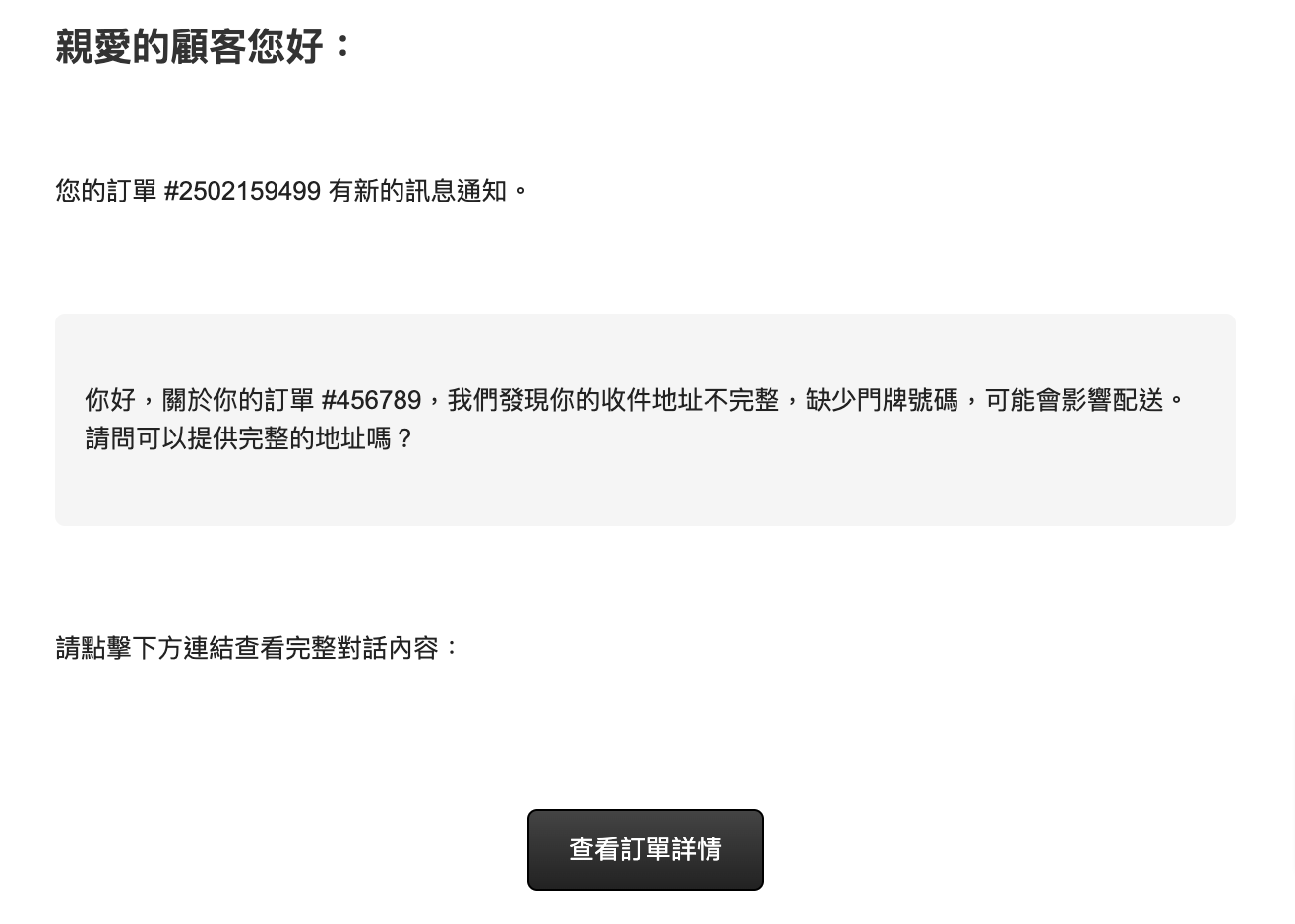 為確保不會漏掉重要的訂單訊息,商家可以設定當有訊息時額外發送 Email 通知